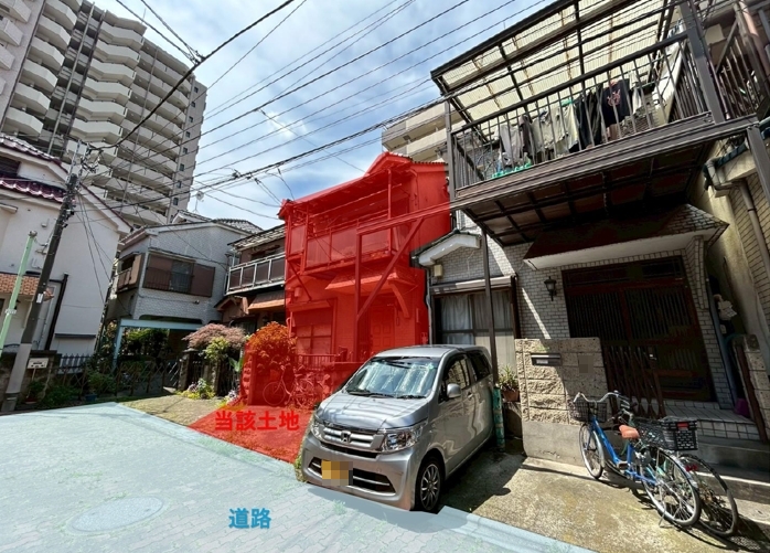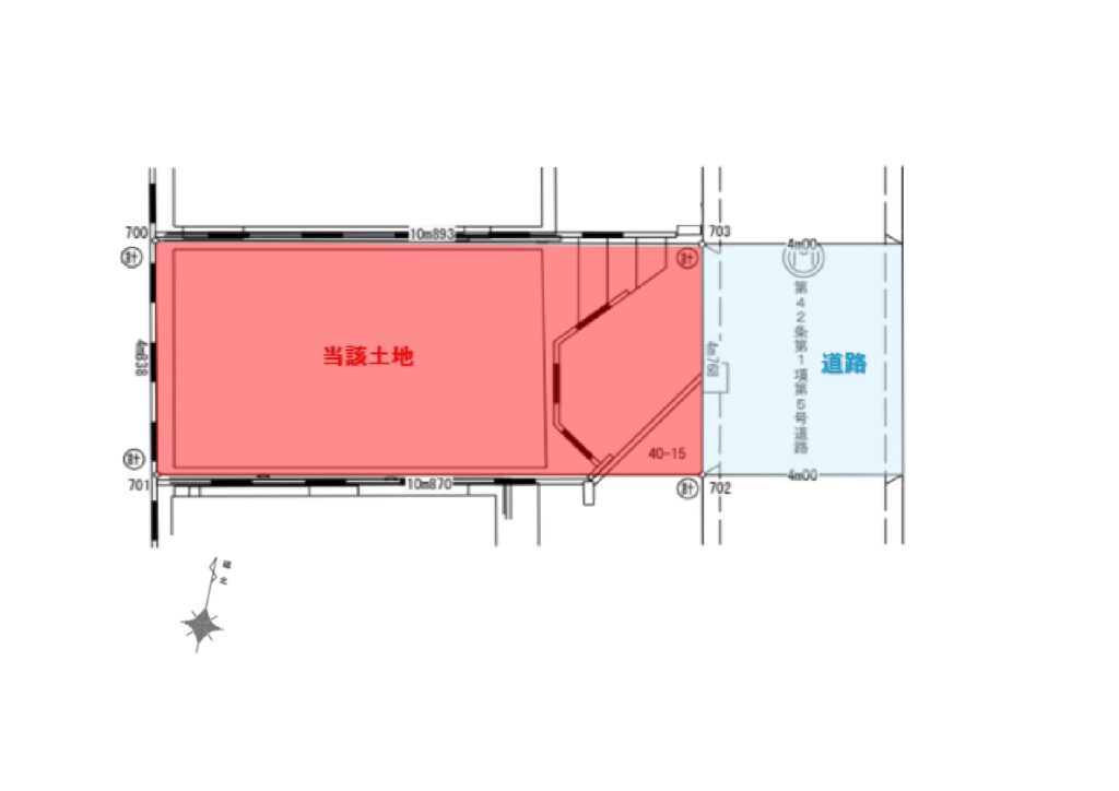 私道負担・道路9.39m2、東4m幅(接道幅4.7m)