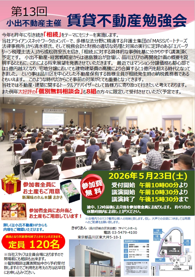 毎年大好評をいただいている「賃貸不動産勉強会」を今年も開催します。